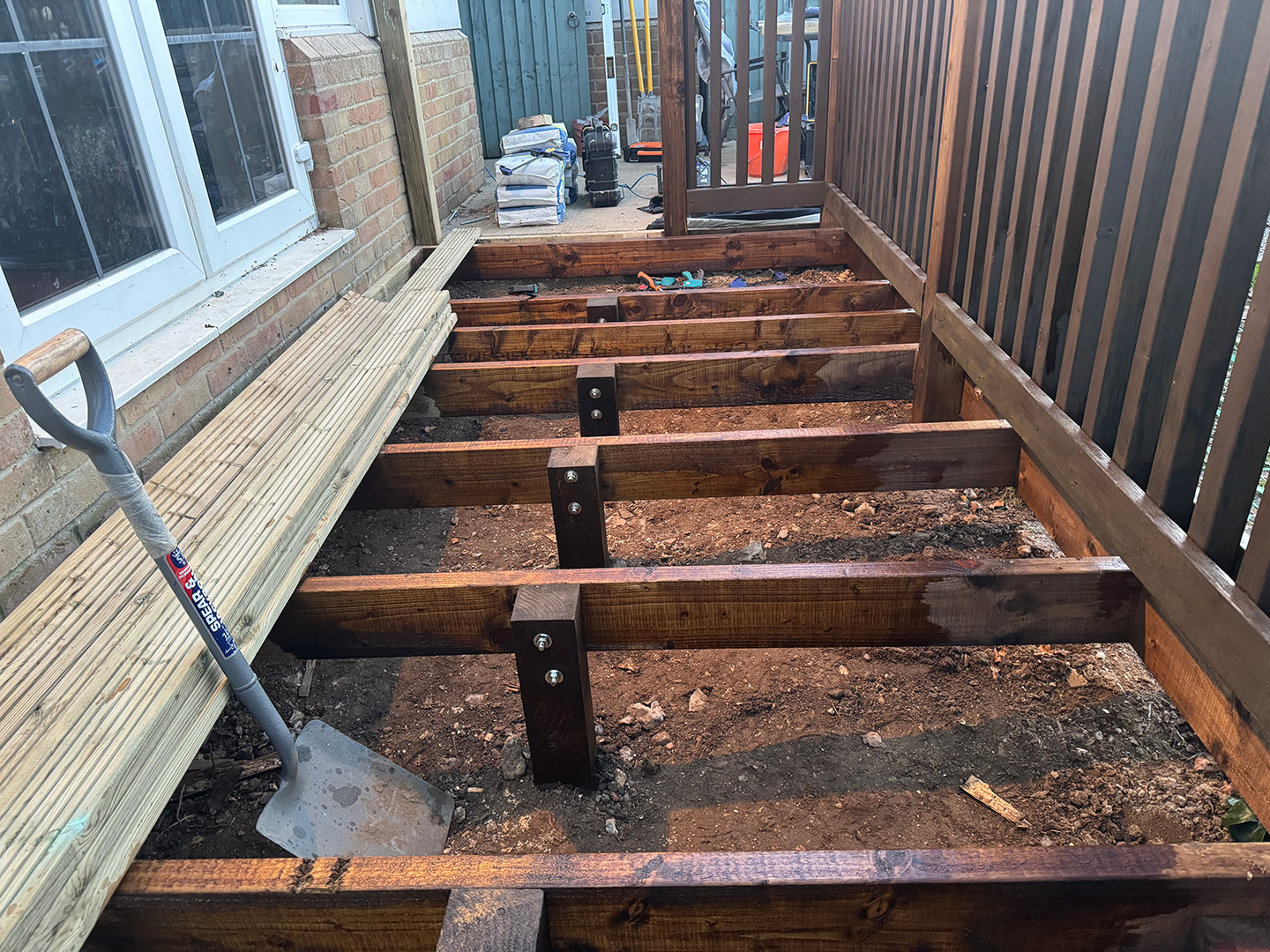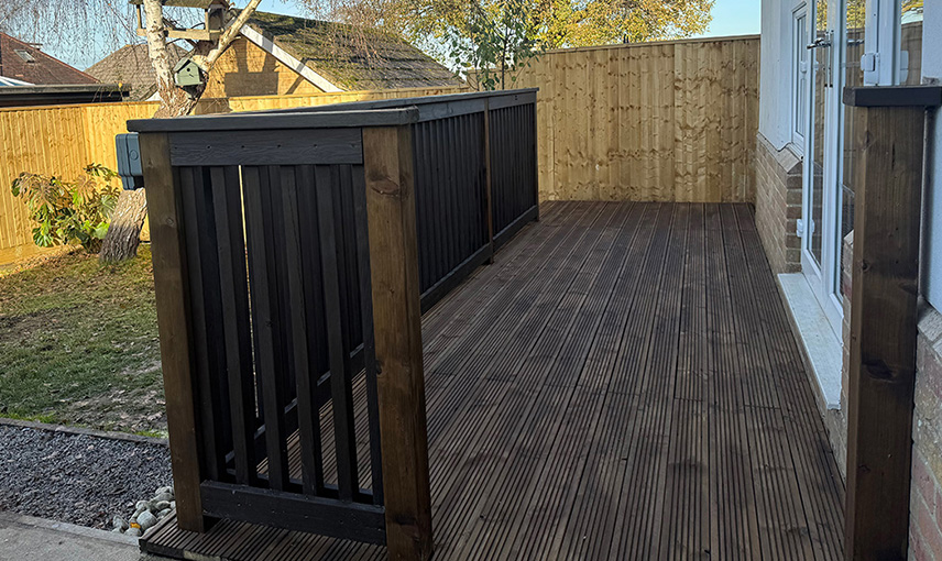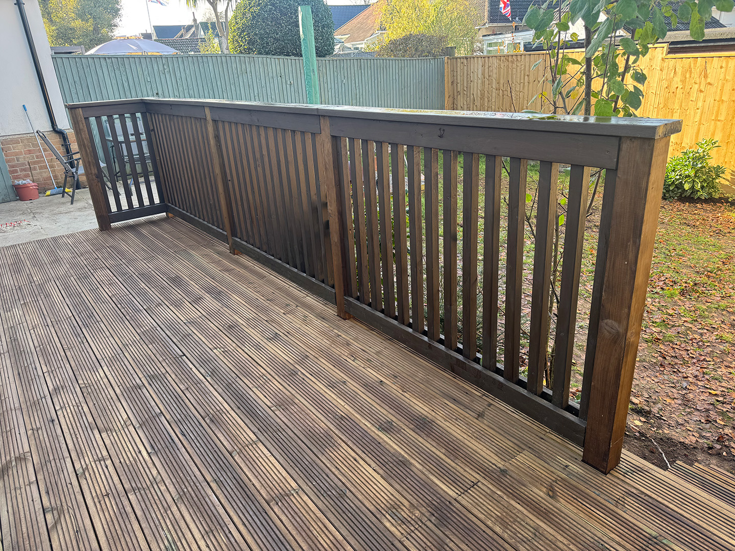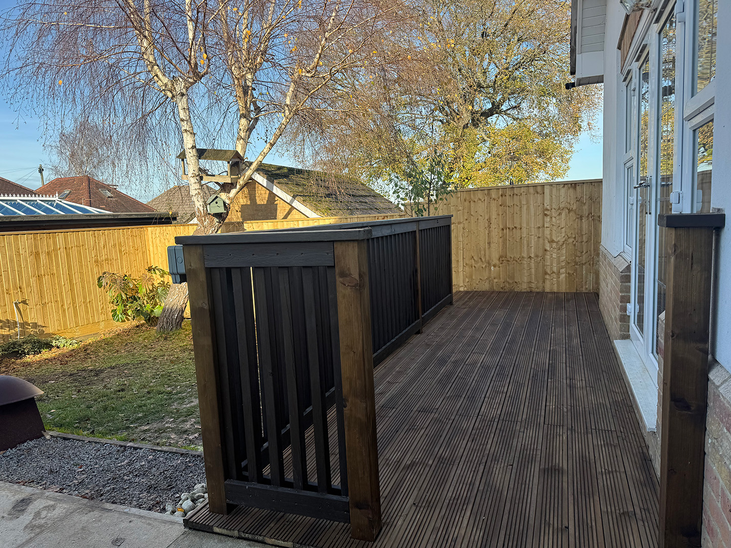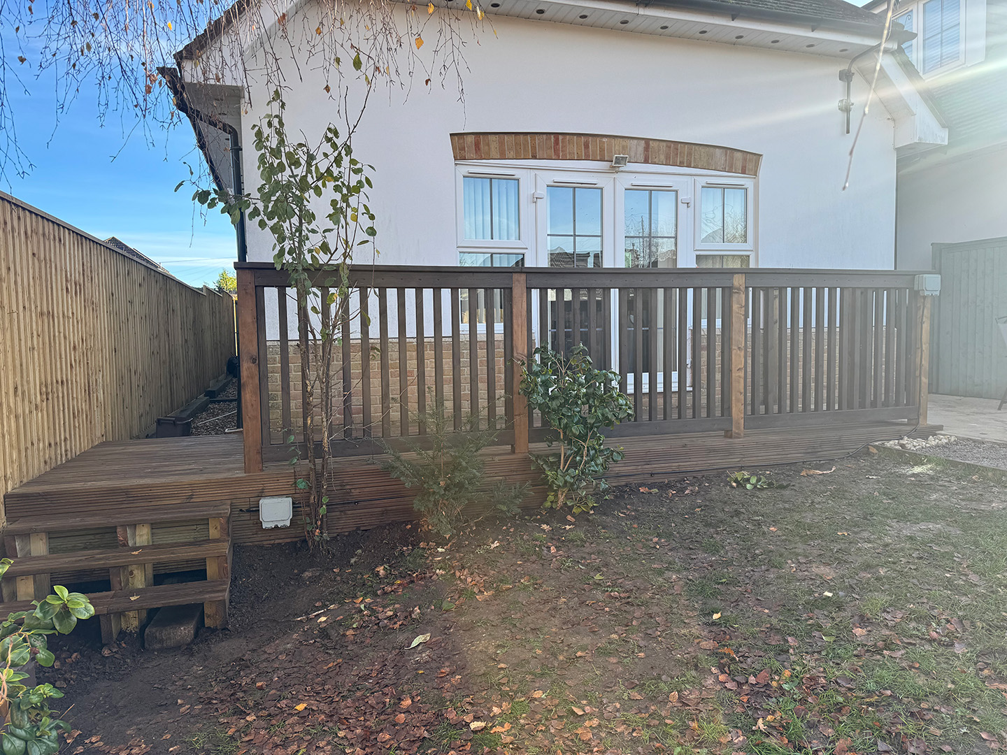 We installed a decking veranda in a customer’s garden, creating a stylish sitting and dining area. This outdoor space enhances their garden’s functionality and aesthetic appeal, providing a perfect spot for relaxing and entertaining with family and friends. Give us a call today to get your decking installed.